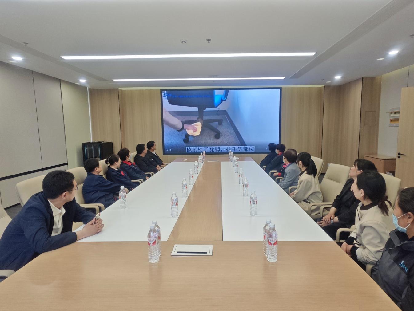 培訓(xùn)圍繞辦公大樓地面清掃、電梯轎廂清潔保養(yǎng)、玻璃幕墻清洗維護(hù)、會(huì)議室、茶水間及衛(wèi)生間細(xì)節(jié)處理到外圍路面和綠化區(qū)域的日常清理管養(yǎng)等內(nèi)容,通過觀看視頻和現(xiàn)場(chǎng)演示方式,詳細(xì)講解了操作規(guī)范和作業(yè)標(biāo)準(zhǔn),確保保潔人員能夠熟練掌握高效、科學(xué)的清潔技巧,提高工作質(zhì)量與效率。