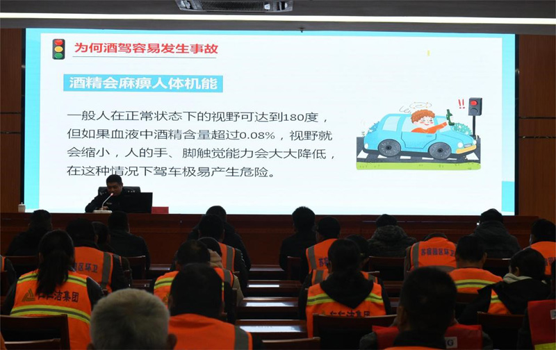 為進(jìn)一步提升園區(qū)城維護(hù)車輛駕駛員交通安全意識(shí)和責(zé)任意識(shí),堅(jiān)決遏制交通事故的發(fā)生。11月16日上午,建發(fā)公司邀請(qǐng)園區(qū)交警中隊(duì)仇兵隊(duì)長(zhǎng)為城市維護(hù)車輛駕駛員做行車安全知識(shí)培訓(xùn)。